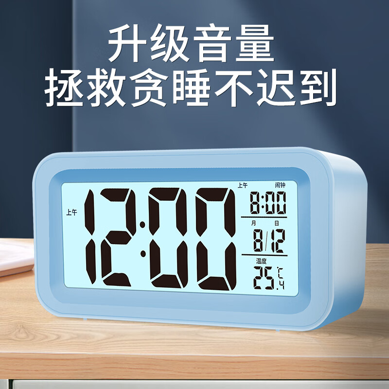 ¥14.9 凯然(KAIRAN)多功能电子闹钟学生用背光电子钟床头钟时钟时间管理温湿度计钟表 【升级触摸】蓝色-夜光大屏显示 19.9