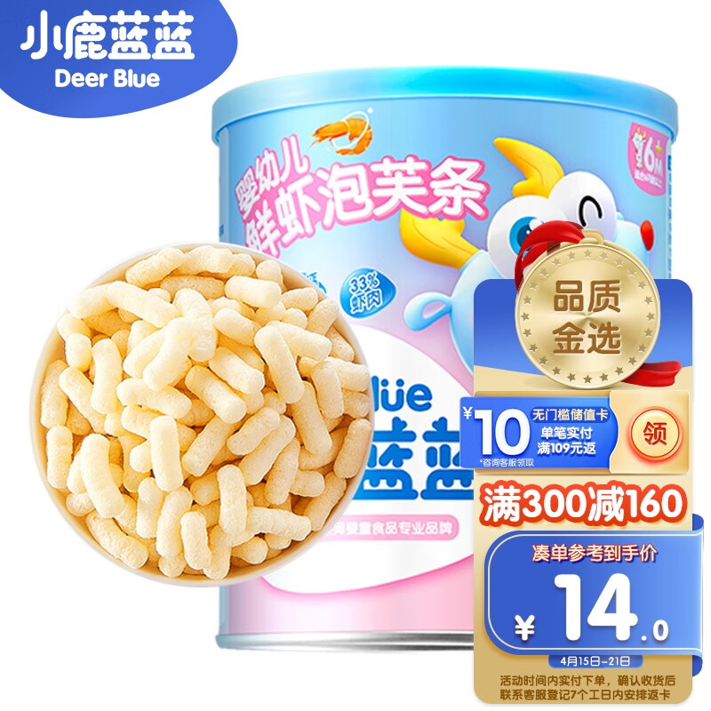 ¥19.9 小鹿蓝蓝婴幼儿泡芙条鲜虾味 6月宝宝零食手指泡芙辅食条 42g 29.9