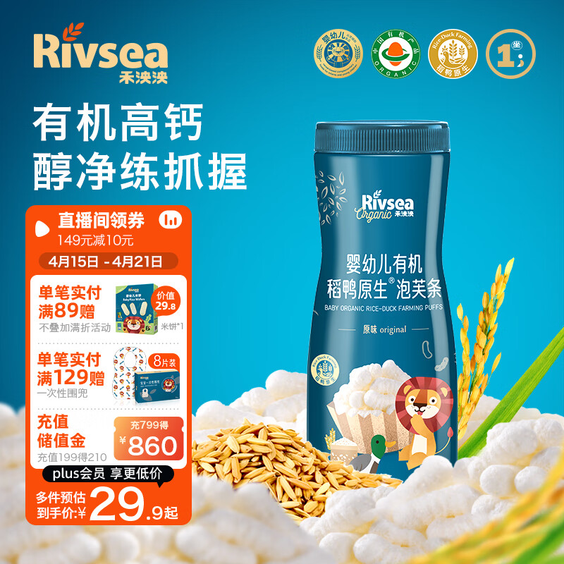 ¥38.8 禾泱泱婴幼儿有机泡芙条 宝宝零食6个月以上 稻鸭原生泡芙条原味32g 39.8