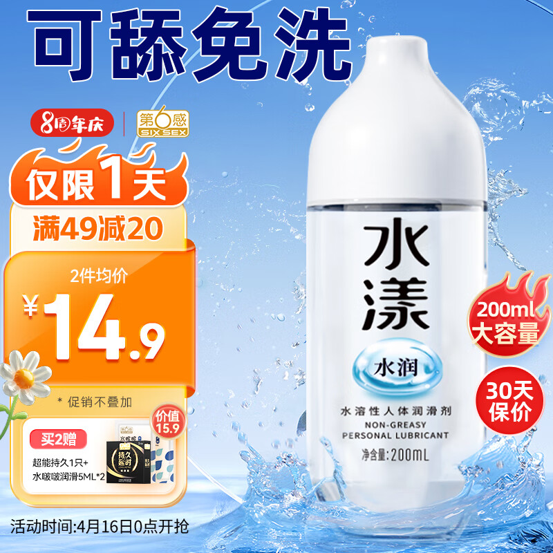 ¥21.9 第六感 人体润滑液200ml 夫妻润滑油 成人房事免洗可舔持久润滑 润滑剂 女性专用快感增强精油润肤油私处水溶性情趣用品 24.9