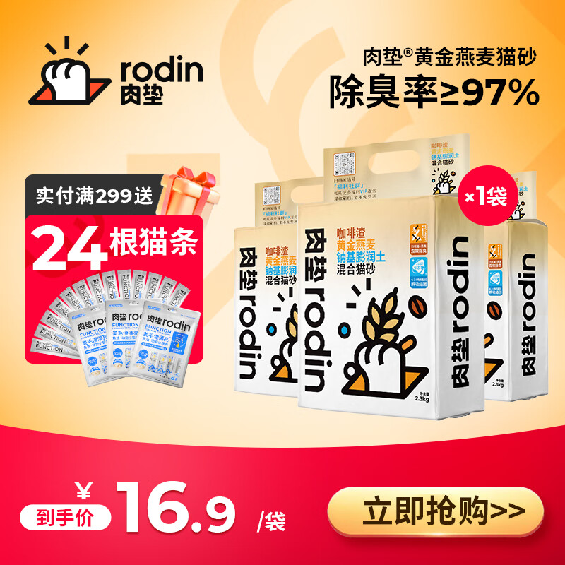 ¥16.9 肉垫(rodin)黄金燕麦豆腐猫砂脚感舒适混合猫砂豆腐猫砂无尘结团 燕麦 1袋体验装【首次尝鲜】 36.9