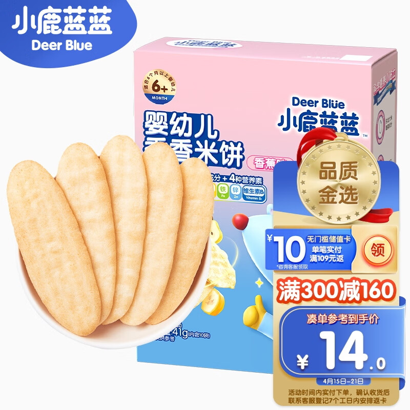 ¥9.9 小鹿蓝蓝 宝宝米饼 香蕉味 宝宝零食儿童零食 营养磨牙 婴儿米饼41g 29.9