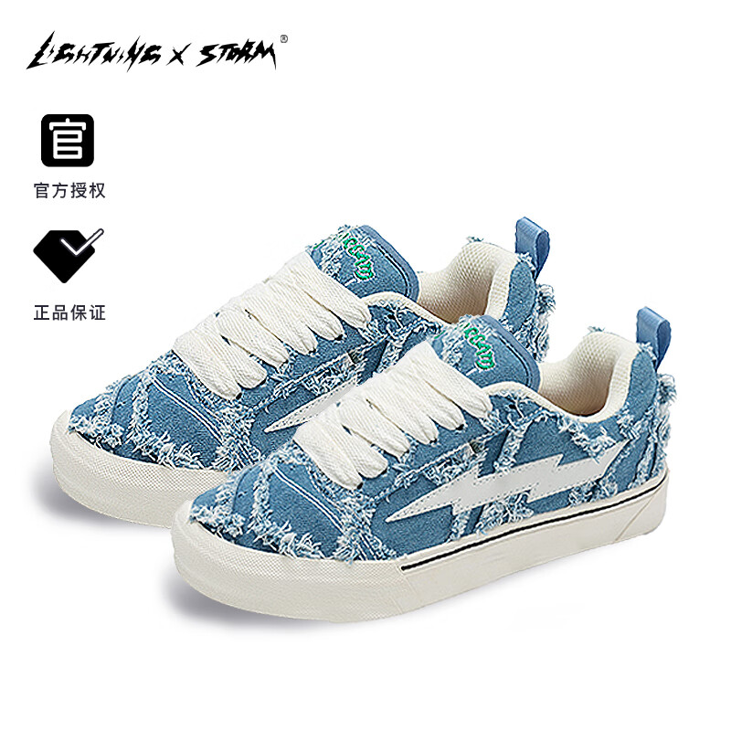 ¥179 LIGHTNING X STORM毕加索联名低帮情侣休闲鞋百搭运动小香风帆布鞋男士透气防滑板鞋 牛仔蓝 42码脚长260 229