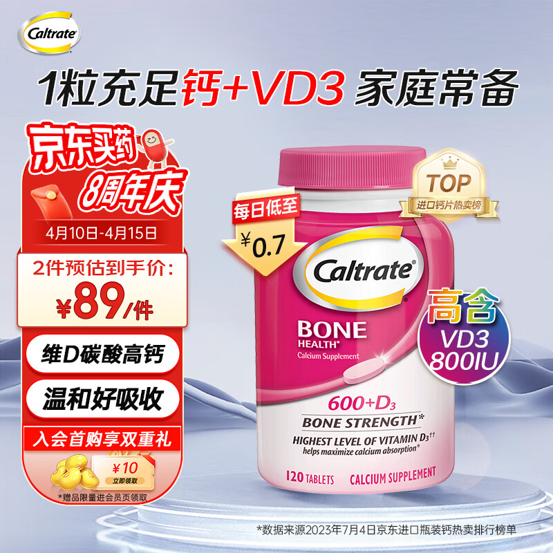¥110 钙尔奇海外 进口钙尔奇 碳酸含维D3钙片120粒 高含量钙+维生素D3 男女成人钙片 骨骼补钙 优质配方易吸收 125