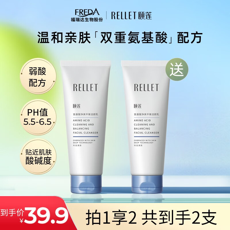 ¥29.9 颐莲(RELLET) 氨基酸深层清洁洗面奶 温和净透男女洁面100g 39.9