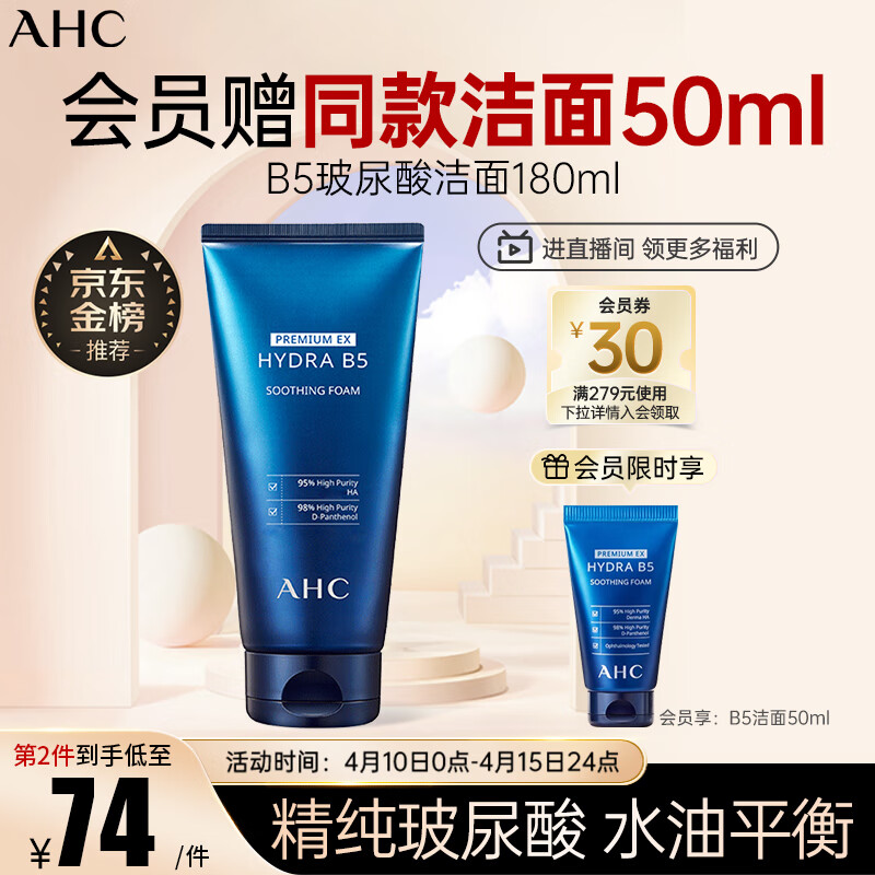 ¥59 AHC臻致水盈洗面奶男女士玻尿酸B5洁面清洁乳护肤品生日礼物 82