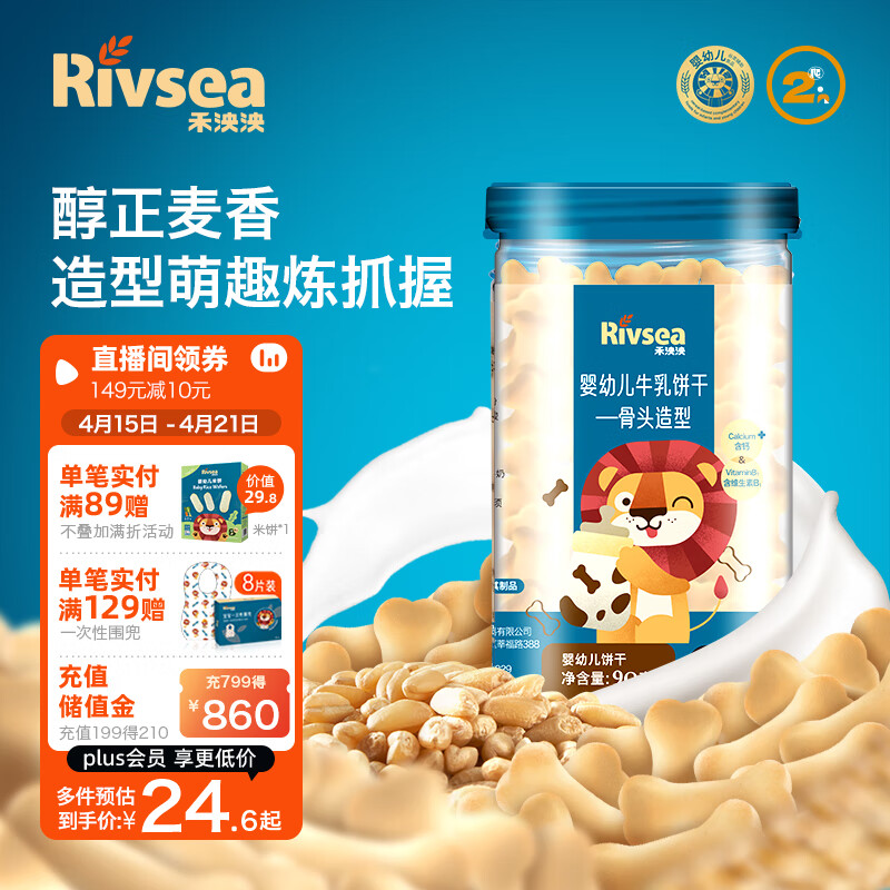 ¥31.8 禾泱泱婴幼儿饼干 宝宝零食 7个月以上 牛乳饼干骨头造型90g 32.8
