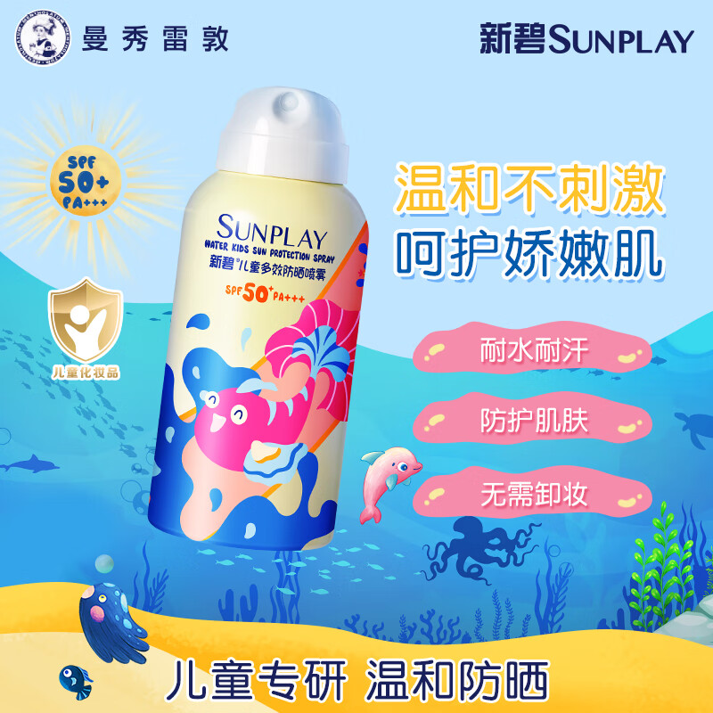 ¥65 曼秀雷敦(Mentholatum) 新碧儿童防晒喷雾100ml 清爽保湿防水晒后修复护肤敏感肌防晒霜 75