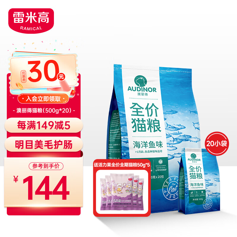 ¥139 雷米高(RAMICAL)幼猫猫粮海洋鱼味全价幼猫成猫猫粮10kg(500g*20分袋)20斤 149