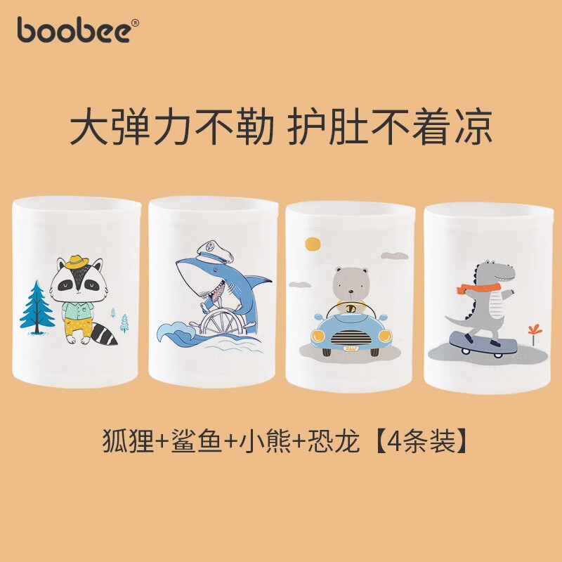 ¥9.9 布比(Boo Bee)肚围婴儿夏季薄款宝宝护脐带新生儿护肚兜腹围儿童护肚子神器 狐狸+鲨鱼+小熊+恐龙【4条装】 18*16cm 29.9