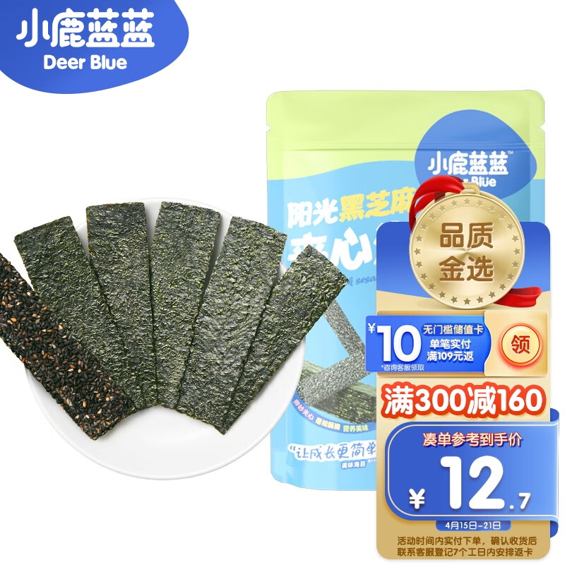 ¥16.9 小鹿蓝蓝黑芝麻海苔夹心脆 鲜脆儿童零食宝宝海苔酥脆口感即食 40g 26.9