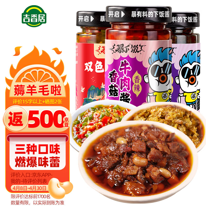 ¥18.9 吉香居 辣椒酱 暴下饭牛肉酱组合200g*3瓶 香菇酱剁椒酱下饭拌饭拌面酱 32.9