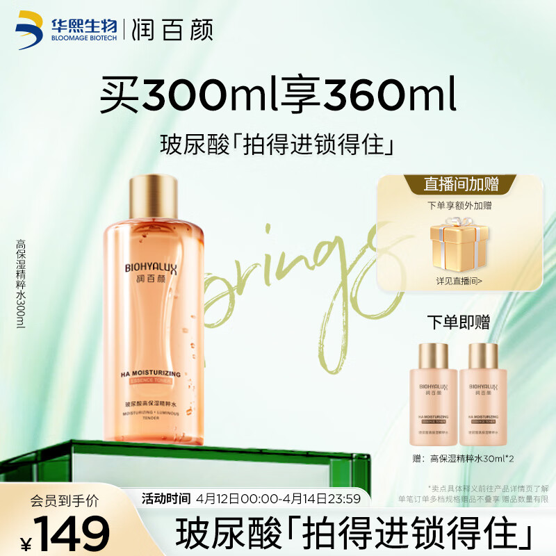 ¥159 润百颜玻尿酸高保湿化妆水精华水烟酰胺香槟水护肤品补水保湿爽肤水 玻尿酸高保湿精粹水300ml 169