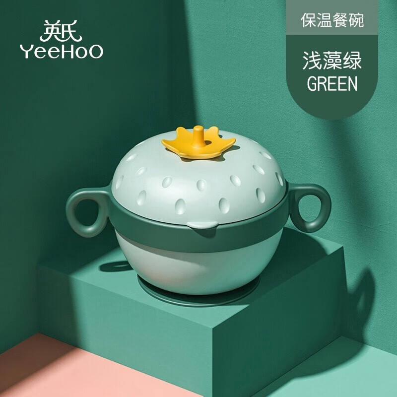 ¥89 英氏(YEEHOO)辅食碗宝宝注水碗婴儿吸盘不锈钢儿童吃饭餐具恒保温新生儿幼儿 多功能强力吸盘注水碗【宝石绿】 99