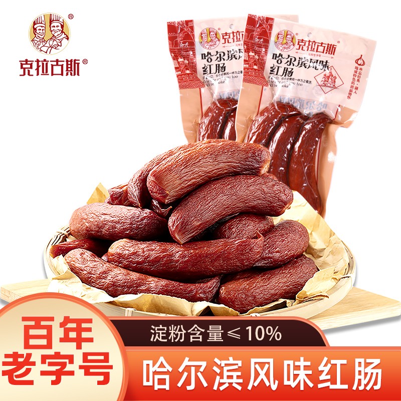 ¥11.9 克拉古斯哈尔滨风味红肠正宗东北红肠沈阳特产猪肉蒜香俄罗斯香肠开袋即食 哈尔滨红肠270*1袋共3根 14.9