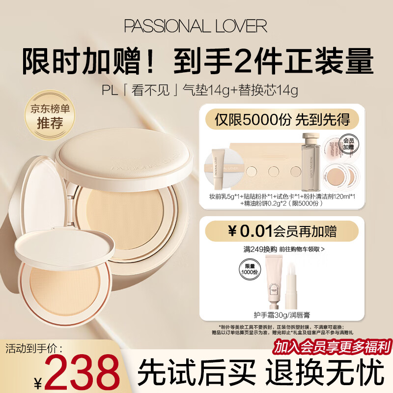 ¥228 恋火(Passional Lover)/PL看不见气垫 01象牙白 干皮奶油肌粉底液持久BB霜 正装+替换芯 248