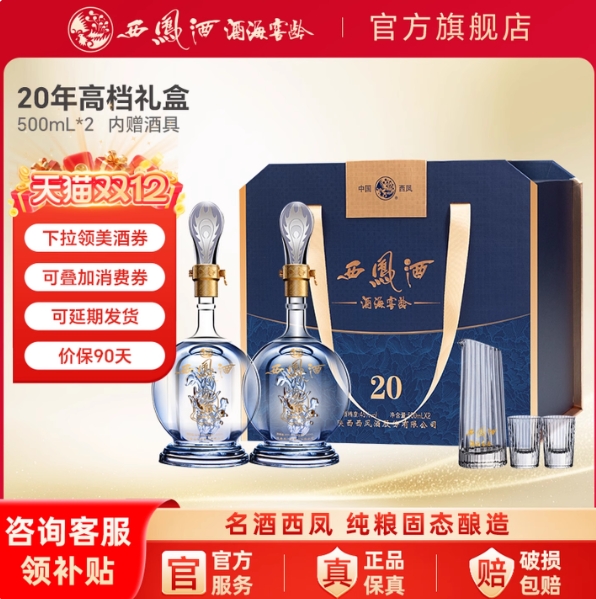 283元!西凤酒 西凤窖龄20年凤香型 45度 500ml*2瓶礼盒装