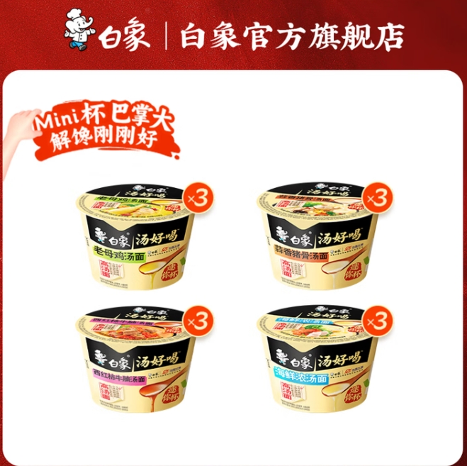 19.5元包邮!白象 汤好喝方便面4味12杯