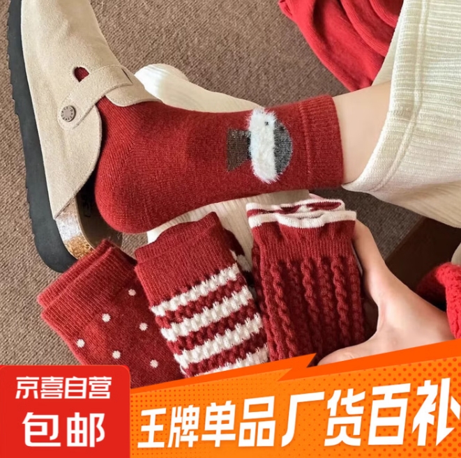4.9元!圣诞袜 2双【斑点+蘑菇狗】