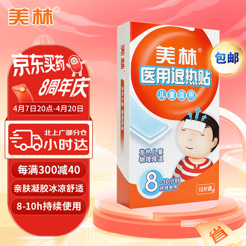¥50.3 美林 医用退热贴10片 退热贴婴儿退烧贴儿童婴幼儿物理降温贴冰凉贴宝宝孕妇成人发烧3个月以上用家中常备 68.3
