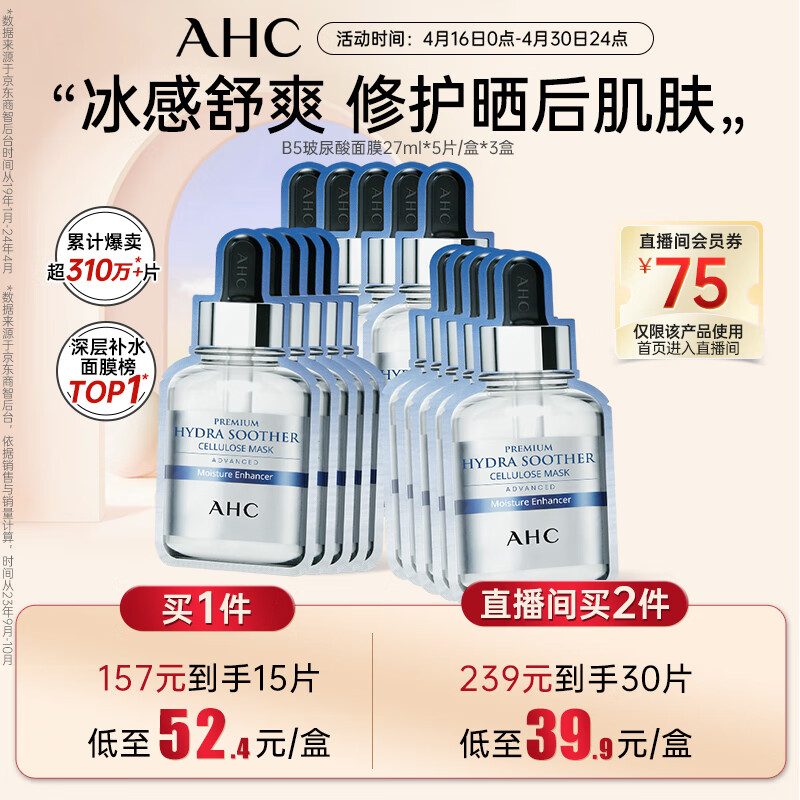¥123 AHC臻致B5玻尿酸补水面膜三盒装(27ml*15片)护肤品生日礼物 157