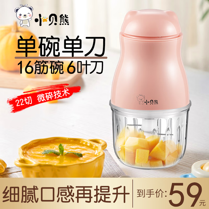 ¥59 小贝熊(xiaobeixiong)【月销过万】辅食机婴儿辅食机料理机宝宝迷你电动家用多功能料理机榨汁 【升级6叶刀头】粉色标配(16筋扰流玻璃碗) 69