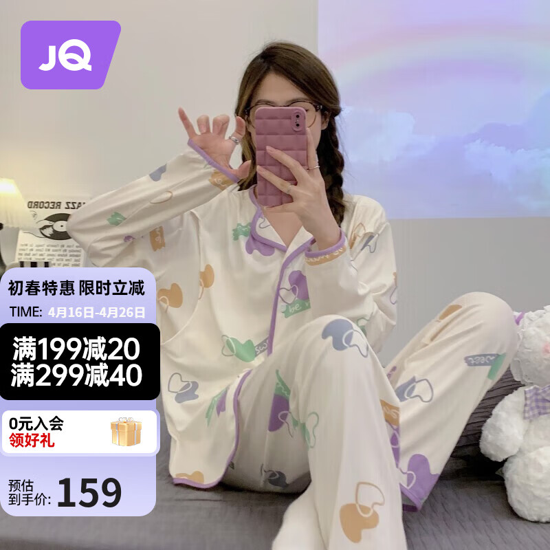 ¥49 婧麒(JOYNCLEON)月子服春秋产后孕妇睡衣女秋冬怀孕期产妇家居服套装 紫色爱心 L码 159