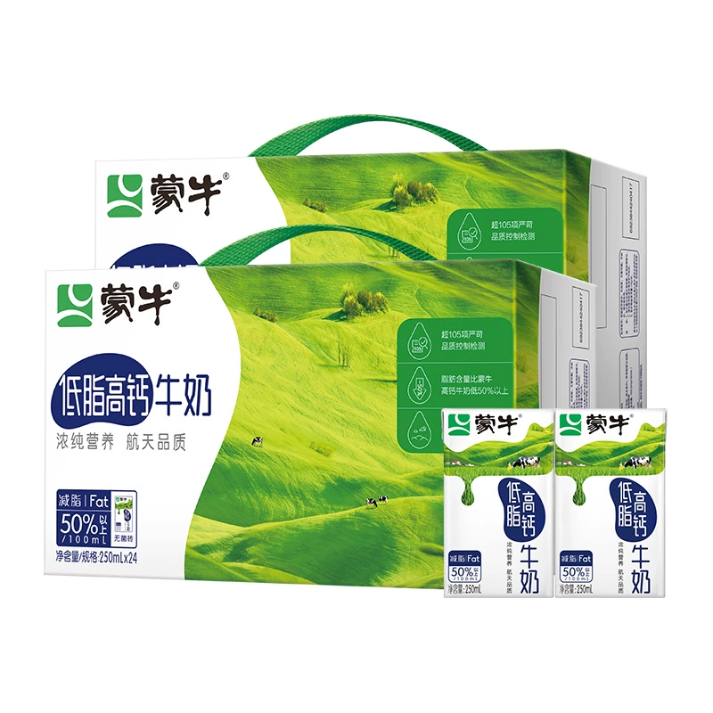 ¥98.8 蒙牛低脂高钙牛奶250ml*24盒/整箱*2提 100.8