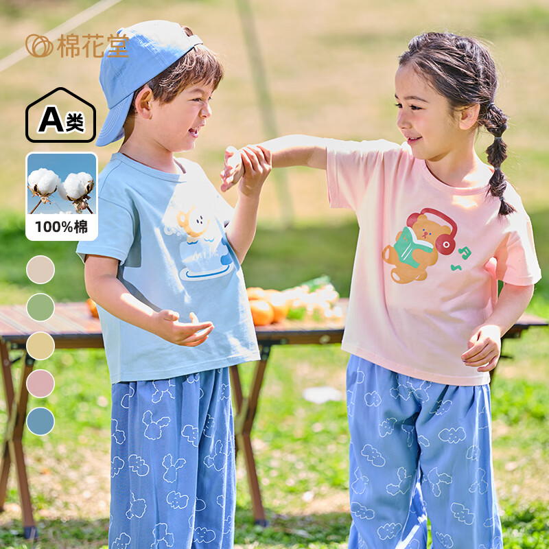 ¥49.9 棉花堂童装男女童短袖t恤洋气儿童半袖2024新款宝宝上衣春夏款女童L 组合二:绿色,米白,蓝色 100/56 139.9