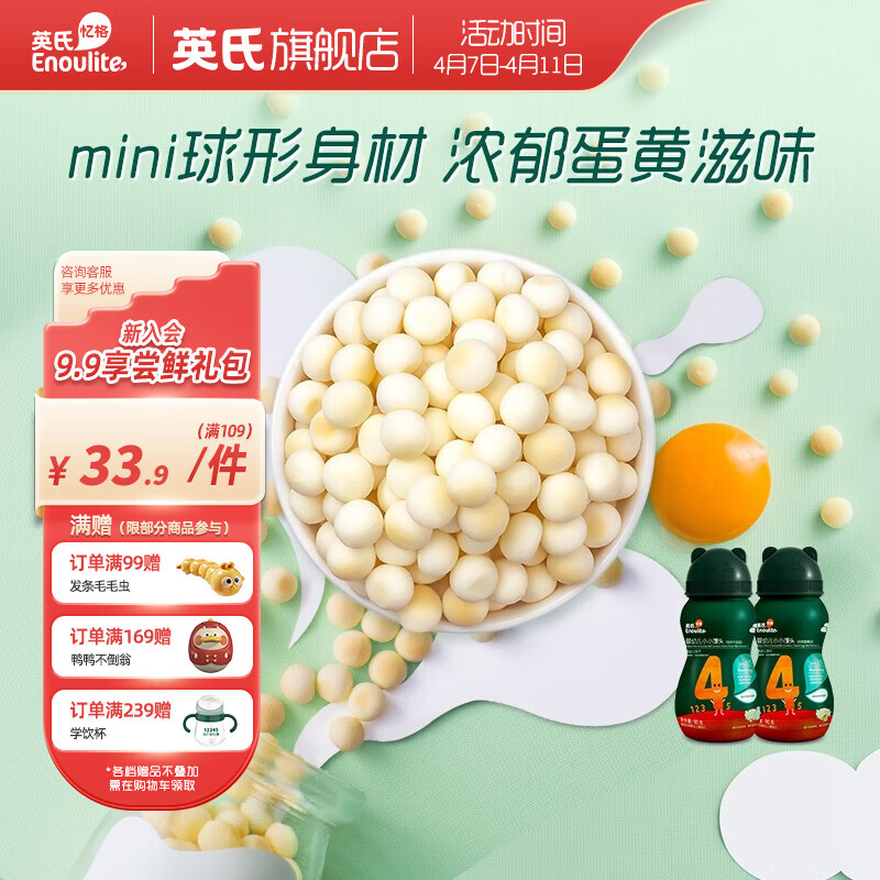 ¥34 英氏【饼干专区】婴幼儿童宝宝零食磨牙点赞饼干特浓高钙牛奶小小馒头 小小馒头2罐(牛奶味+蛋黄味) 39