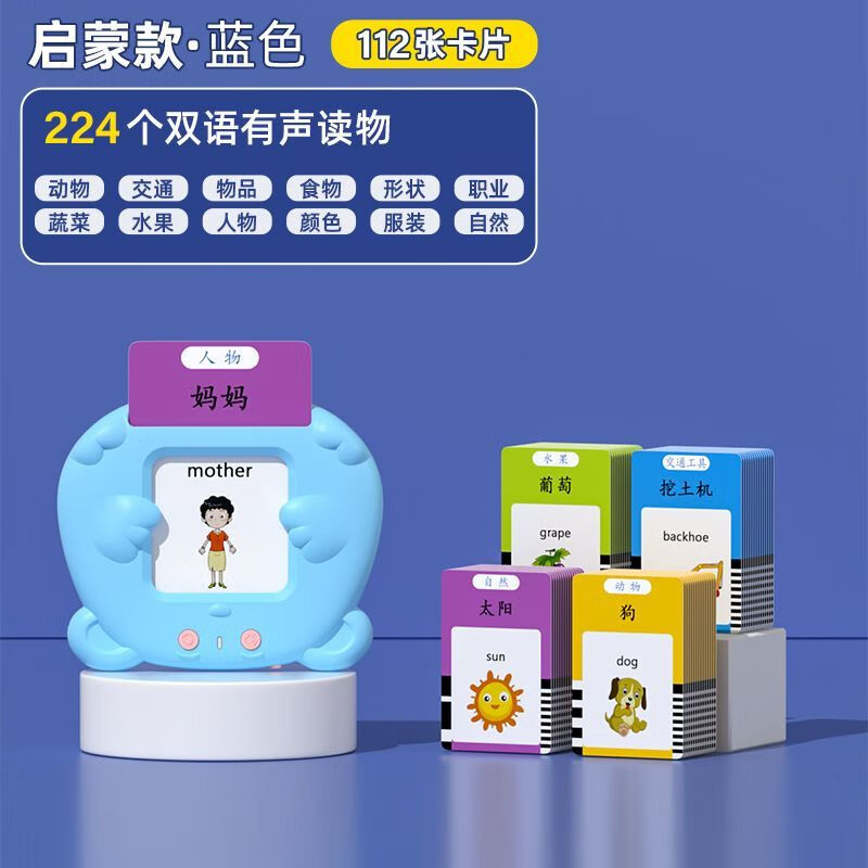 ¥17 馨铂斯 唐诗早教插卡机 儿童插卡片早教机双语识字学习机USB充电版 蓝色早教机+112张卡片(中英版) 82