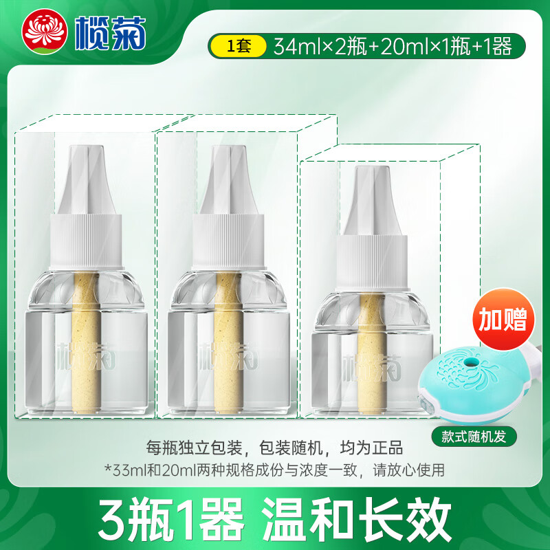 ¥14.9 榄菊电蚊香液驱蚊液婴儿孕妇儿童家用无香型灭蚊器电蚊香加热器电热驱蚊水补充装 无味3液+1器(驱蚊130晚) 蚊香液 24.9