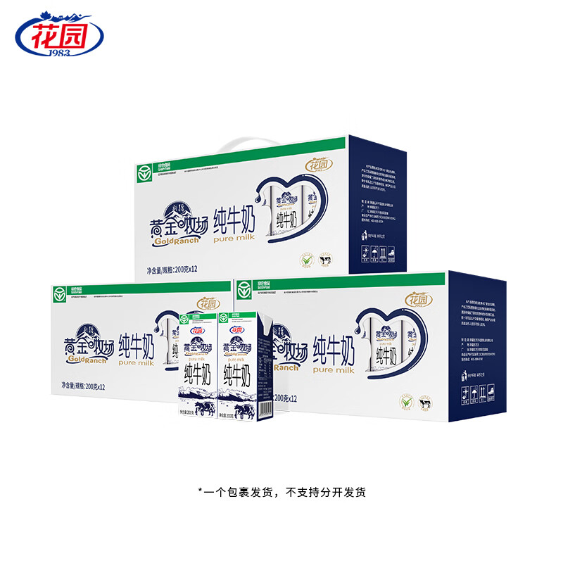 ¥94 花园 黄金牧场纯牛奶200g*12盒 3箱 160
