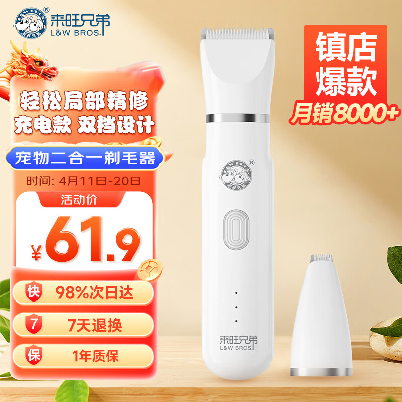 ¥56.9 来旺兄弟宠物狗狗剃毛器猫咪剃脚毛修剪器狗推子剪毛器二合一充电款 61.9