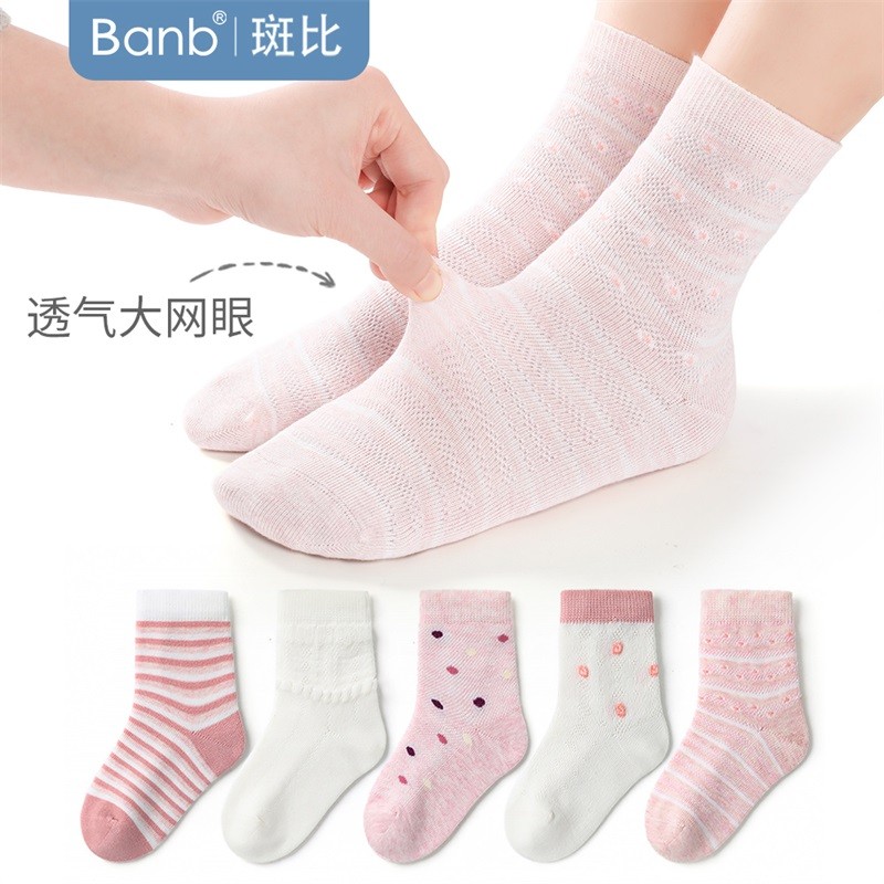 ¥31.9 斑比儿童袜子女孩夏天薄款精梳棉中大童春秋季透气网眼宝宝袜子 BB2102春夏儿童网眼袜5双装 22-24(建议11岁以上脚码38-42) 39.9