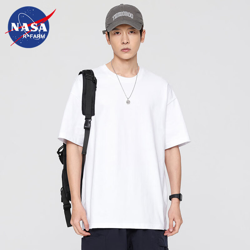 ¥29 NASAR-FARM重磅210g纯棉纯色T恤夏季男女同款落肩圆领厚实打底衫内搭短袖 白色 L 49