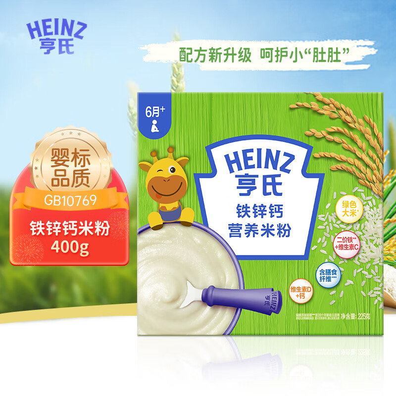 ¥51.9 亨氏(Heinz)婴幼儿米粉宝宝辅食营养米糊6-36个月铁锌钙米粉400g(新升级) 59.9