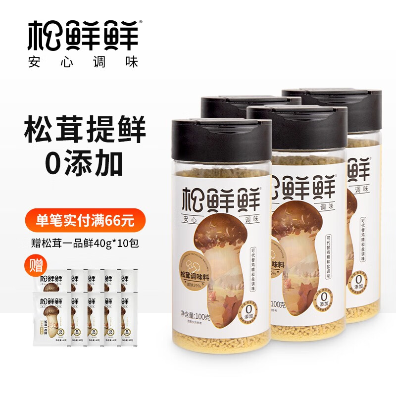 ¥58.9 松鲜鲜松茸鲜松茸调味料宝宝代替盐和鸡精炒菜炖汤调味品0添加减钠29% 代替盐和鸡精100g*4瓶 65.9