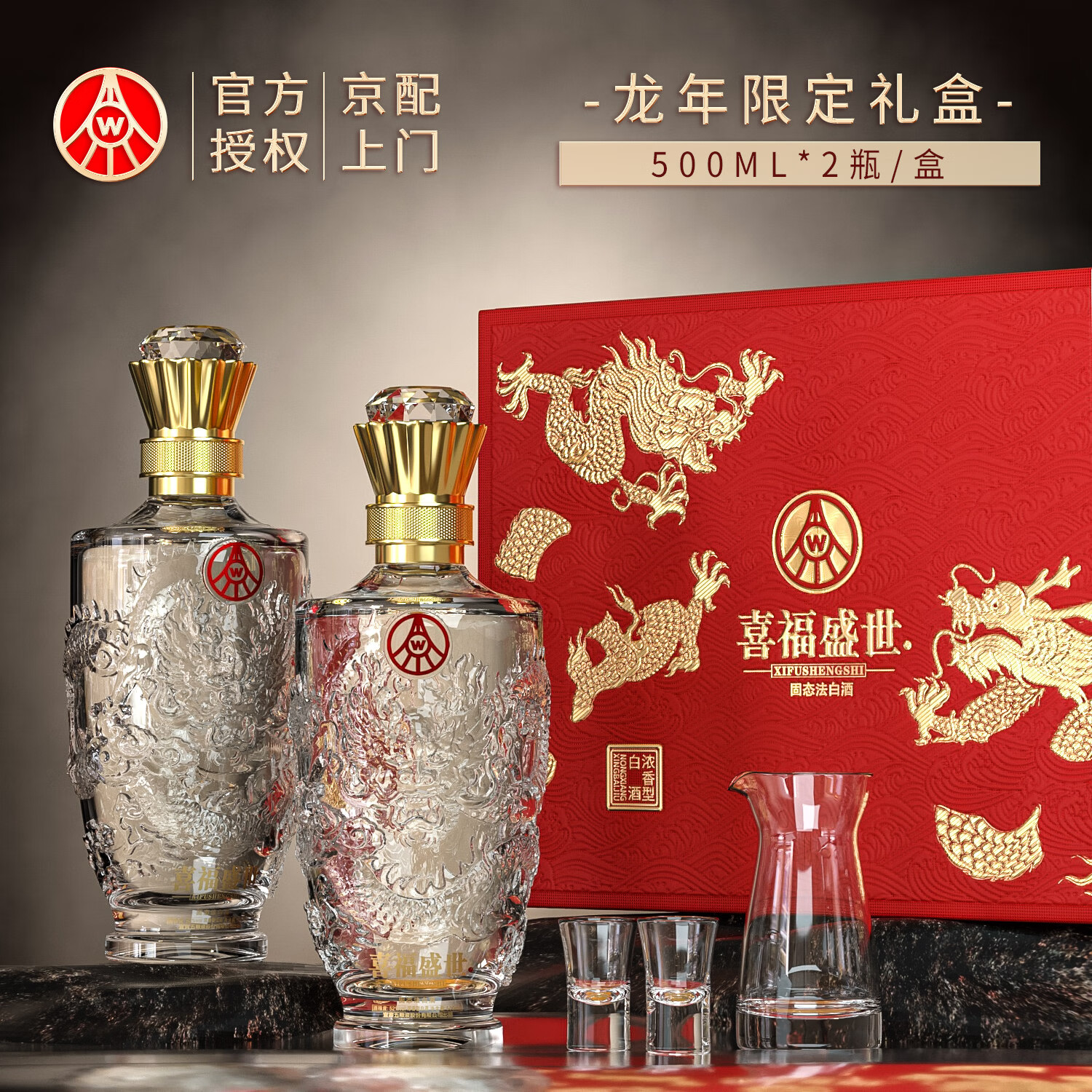 ¥319.9 五粮液股份出品 官方授权 52度优级 浓香型白酒 喜福盛世 52度 500mL 2瓶 龙年礼盒装 989.9