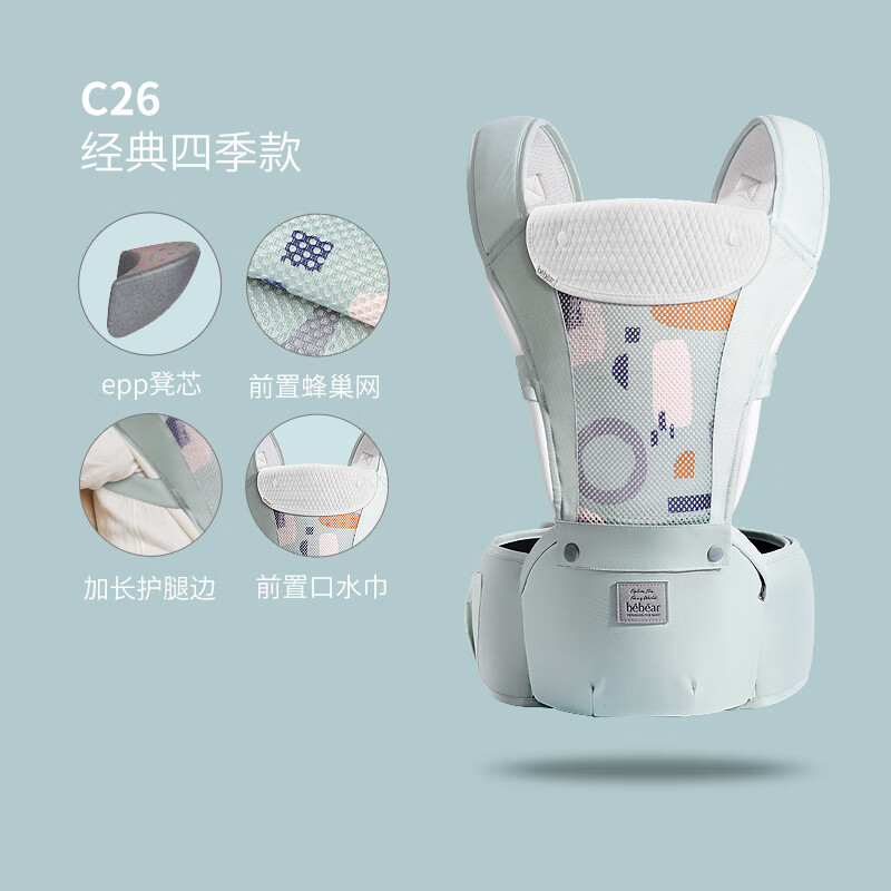 ¥239 抱抱熊婴儿背带腰凳宝宝抱娃神器减震坐垫硅胶防滑四季通用宝宝 芙尼绿 309