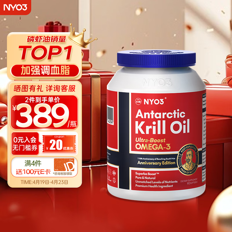 ¥439 NYO3诺威佳挪威纯南极磷虾油软胶囊 阿蒙森纪念版 鱼油升级56%磷脂DHA EPA omega-3中老年成人 春节送礼 海外进口 469