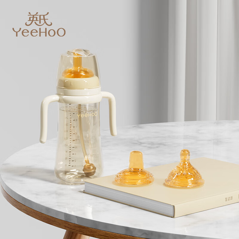 ¥59.9 英氏(YEEHOO)婴儿奶瓶宝宝学饮杯儿童水杯婴儿喝水重力球PPSU奶瓶婴儿带手柄杯 奶白色配三头两重力球 300ml 139.9