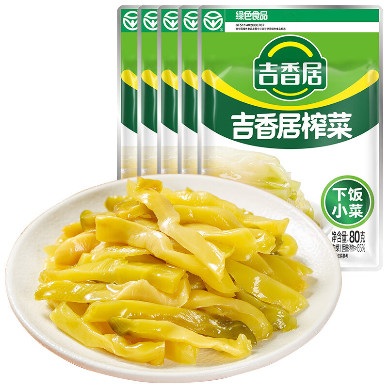 ¥7.9 吉香居榨菜 绿色食品 鲜香爽脆下饭菜 咸菜 80g*5袋 早餐小菜 10.9