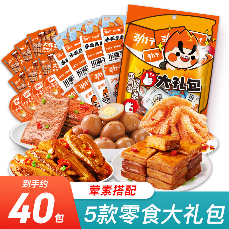 ¥59.9 劲仔豆干素肉手撕素肉豆腐干湖南特产休闲零食小吃素食解馋大礼包 辣卤零食礼包 320g 【40包】 109.9