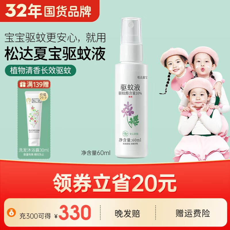 ¥19.9 松达夏宝蚊香液驱蚊液驱蚊用品防蚊喷雾舒爽便携驱蚊水 驱蚊液60ml 39.9