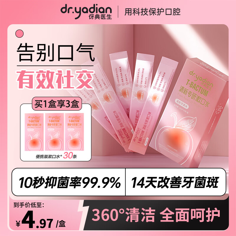 ¥9.9 伢典医生条装便携漱口水 清新口气抑菌无酒精漱口液 独立包装 随机口味到手30条 19.9