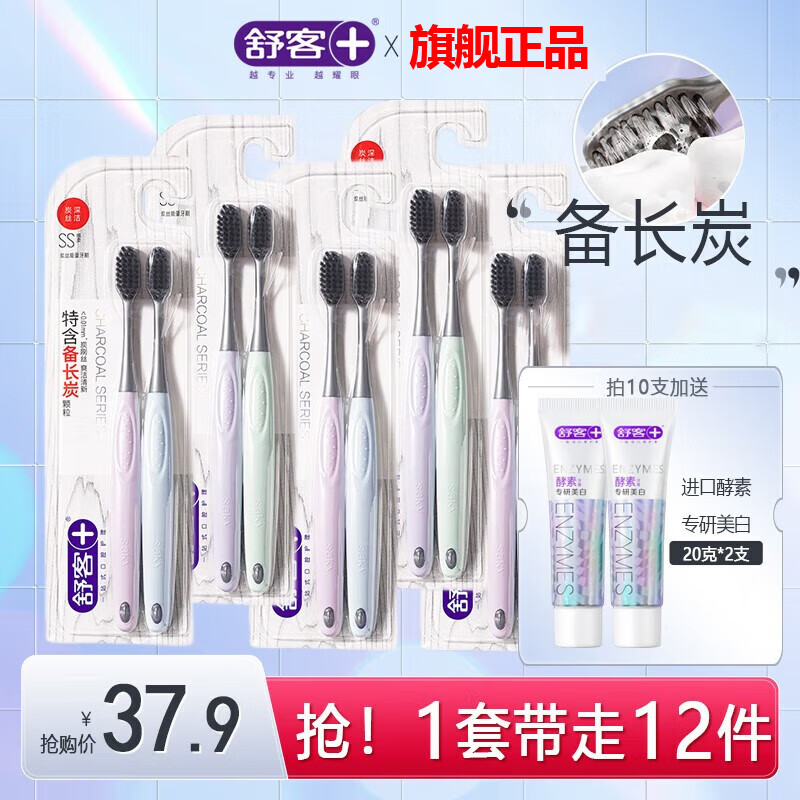 ¥26.9 舒客克炭丝能量牙刷软毛小头家用家庭装成人男女专用情侣高档牙刷 【10支】炭丝软毛牙刷 10支 37.9