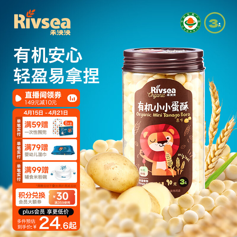 ¥31.8 禾泱泱蛋酥 儿童零食 有机饼干 易抓握 有机蛋酥原味90g 32.8
