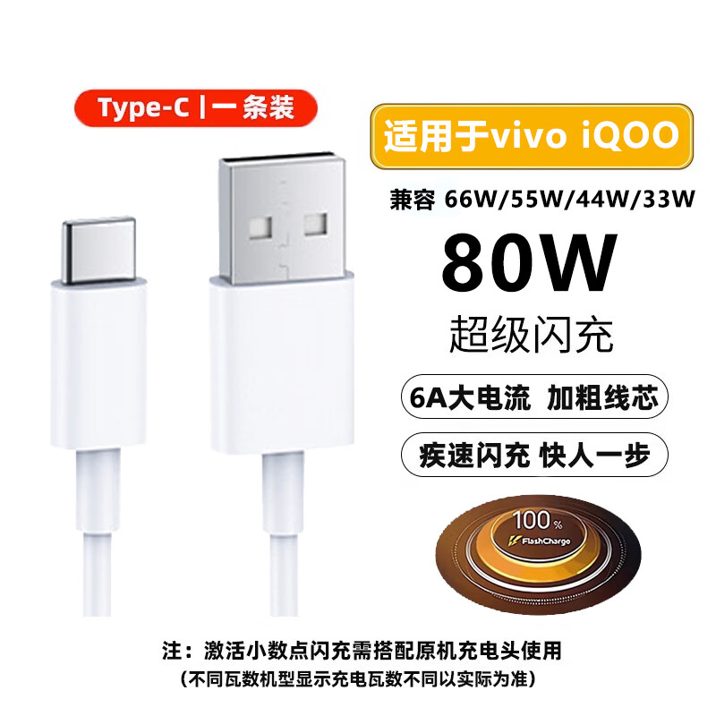 ¥8.8 京充适用vivo iQOO充电线120W/80W/66w/55W/44W/33W/22.5W双引擎快充Type-c数据线6A安卓闪充加长线 vivo/iQOO【80W双引擎快充】1条装 1米 9.8