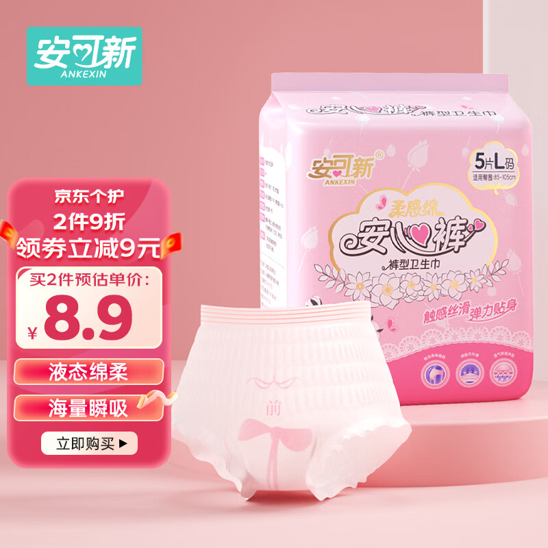 ¥9.9 安可新 安睡裤 安心裤夜安裤超熟睡棉柔夜用姨妈巾奢柔系列 L码5片 19.9